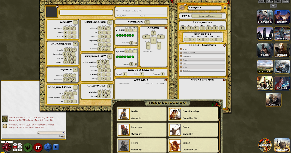 If the foundry vtt community came out with a character sheet and doom / fortune tracker for conan there would be no reason to use the FG one at all imo (and I usually advocate FG’s strengths)