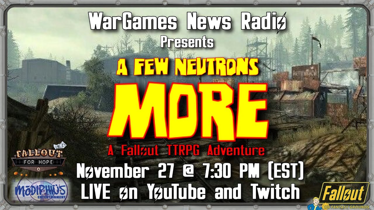 WGNR is back tonight @ 7PM (EST) for Fallout 2d20 LIVE!
